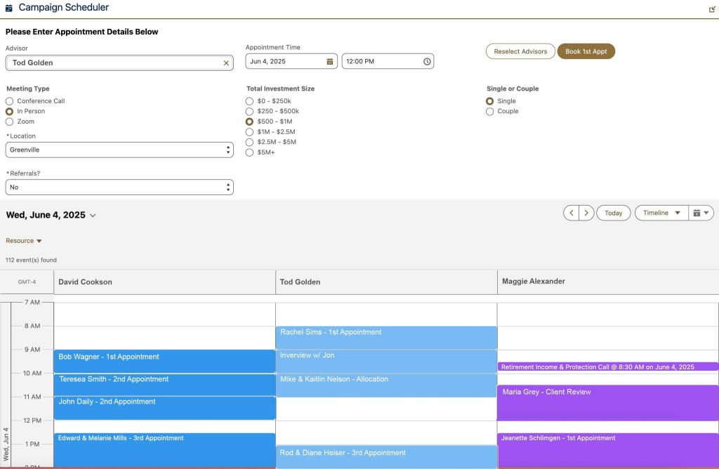 Statosphere captures granular data across every campaign and appointment, giving you a breakdown of which advisors are closing best by demographic, product type, and even location. Know exactly where to double down, coach, or shift resources — all with one glance at the dashboard.